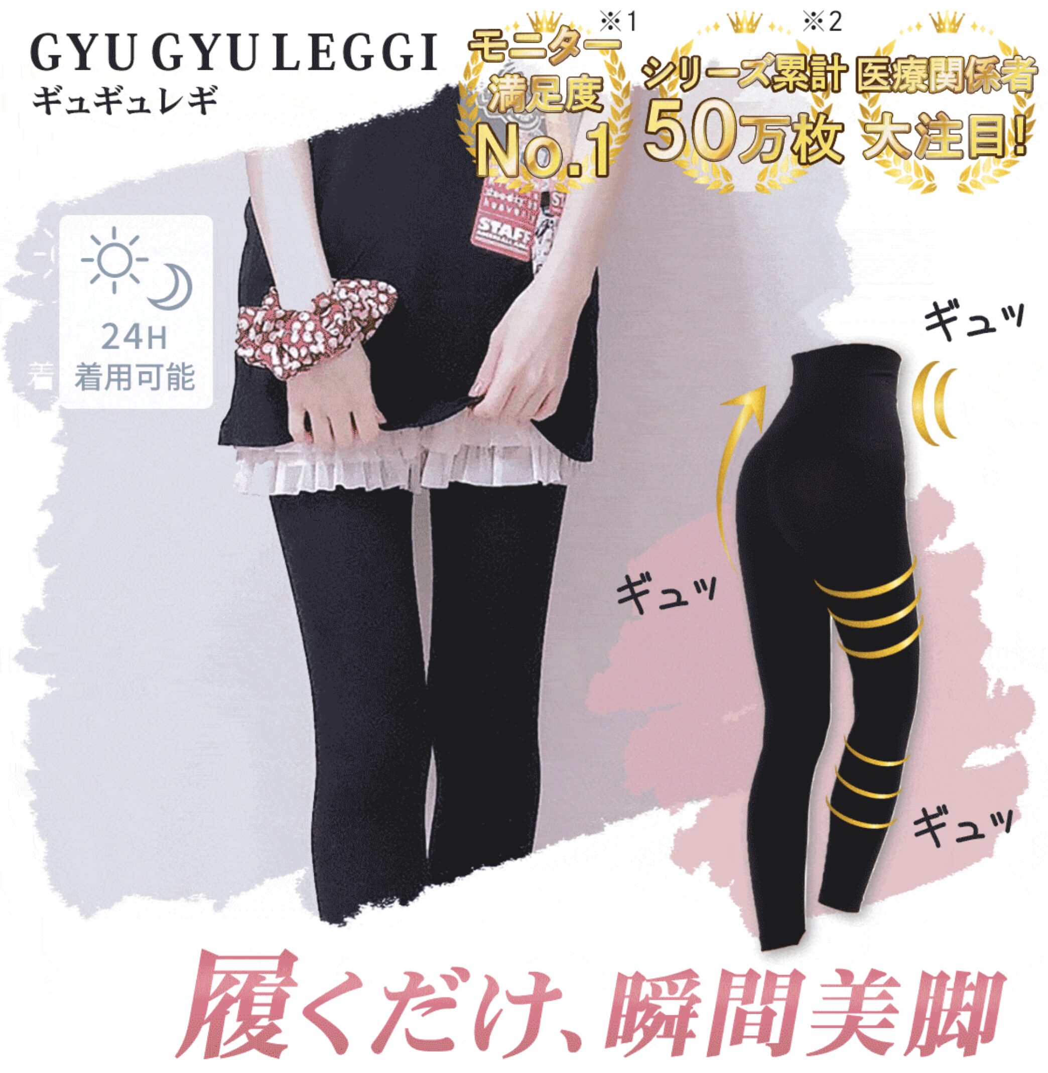 脚のラインをすっきり見せたい方や、下半身のスタイルを整えながら毎日のケアを無理なく続けたい方に取り入れやすいのが、ギュギュレギです。履くだけで使える手軽さが魅力で、特別な運動を始めたり、毎日時間をかけてケアをしたりしなくても、日常の中で自然にスタイルケアを続けやすくなっています。LPでは「履くだけ、瞬間美脚」「段階式着圧・ハイウエスト設計」と打ち出されており、脚だけでなくお腹まわりまで意識しながら、全体のシルエットをきれいに見せたい方にも向いています。
