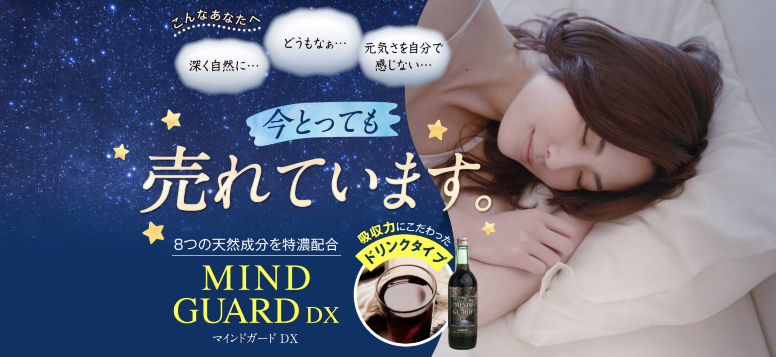 マインドガードDXは、夜になると気持ちが休まりにくい方や、考えごとが増えてなかなかゆったりした時間を持てない方、毎日のリズムを整えながらすっきりとした休息習慣を目指したい方に向いているドリンクタイプの栄養補助食品です。忙しい毎日を過ごしていると、夜になっても頭の中が切り替わらず、布団に入っても気持ちが落ち着かない、朝起きてもなんとなく疲れが残っているように感じることがあります。そんなときに、無理をしながら日々を乗り切るのではなく、毎日の過ごし方や取り入れるものを見直して、自分なりの休息環境を整えたいと考える方に取り入れやすいのがマインドガードDXです。