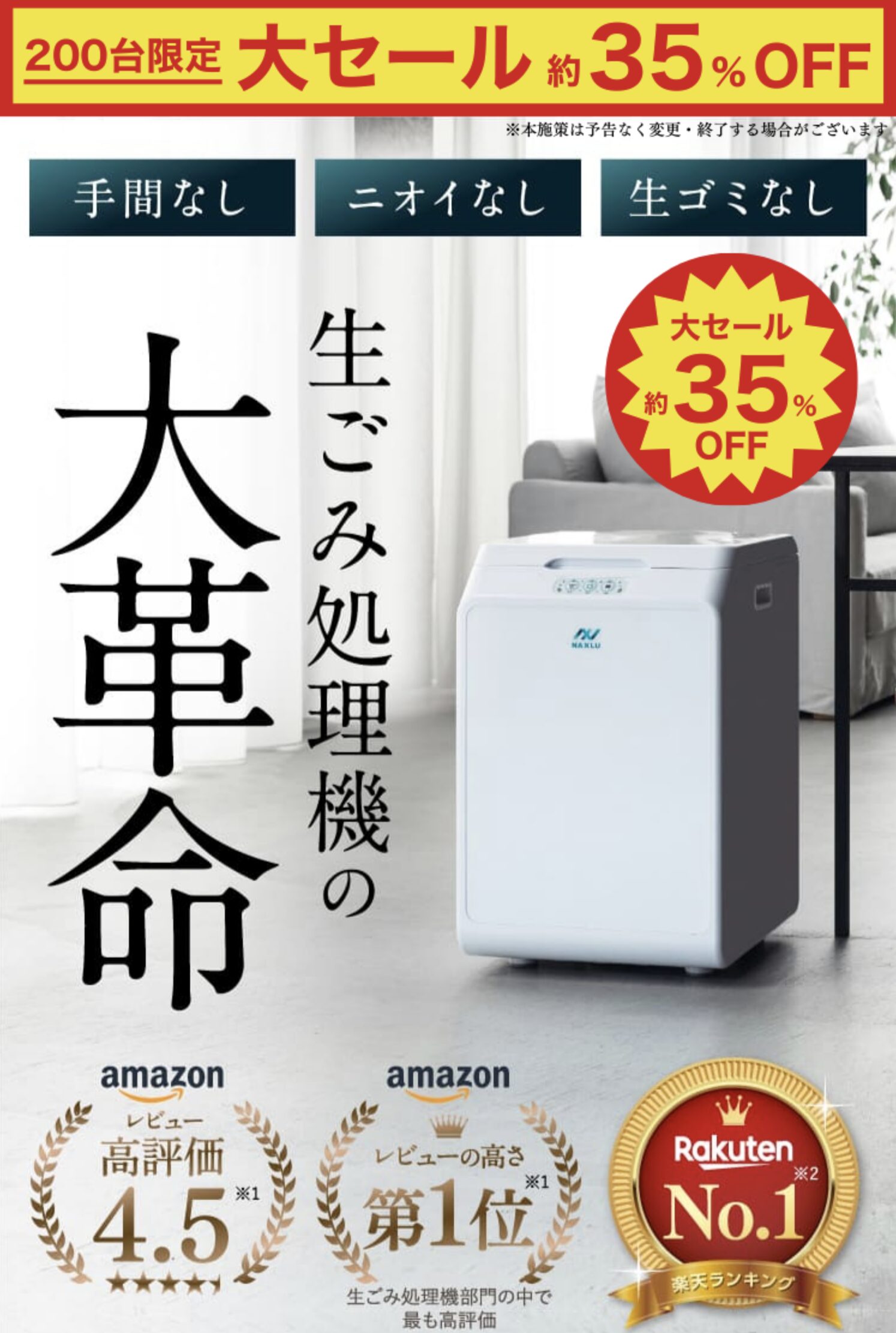 | 商品名 | ハイブリッド生ごみ処理機 ナクスル(NAXLU) |