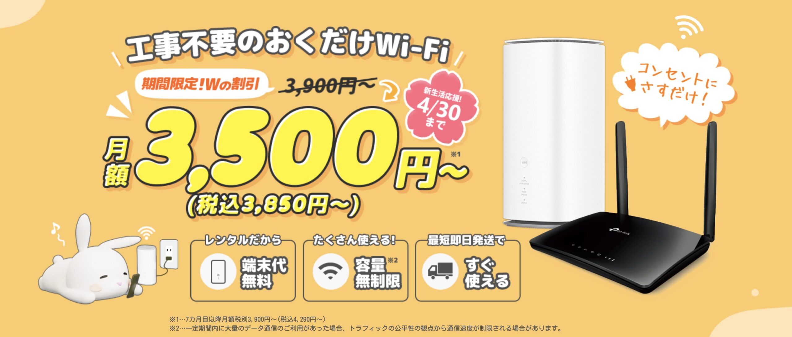 コンセントに挿すだけで使い始めやすいホームルーターレンタルサービス